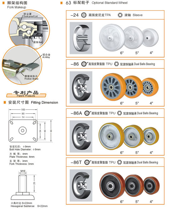 63 精密中型腳輪
